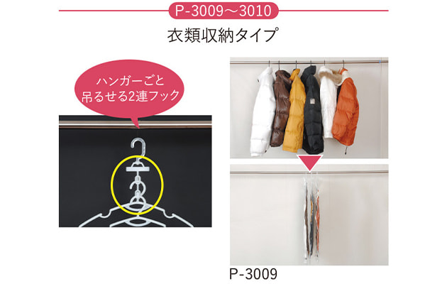 ハンガーそのままつるせる 衣類圧縮袋〈ロング〉 | 座布団3~5枚 or クッション2~5枚 |