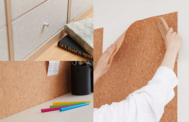 ・ナチュラルな風合いで人気の高いコルク素材を気軽に使えるシートに加工。