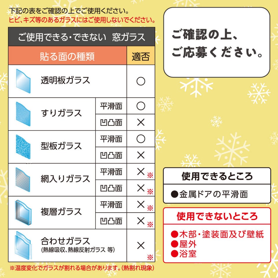 ※ご使用できる窓ガラス・できない窓ガラスがあります。下記確認の上、ご応募お願いいたします。
